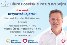 Informujemy, że w Łęcznej działa już Biuro Poselskie Posła dr. Krzysztofa Bojarskiego.