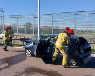 W godzinach porannych na drodze ekspresowej doszło do groźnie wyglądającej kolizji. Zderzyły się dwa pojazdy osobowe jadące w kierunku Lublina.