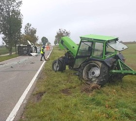 O dużej dawce szczęścia mogą mówić uczestnicy zdarzenia drogowego, które miało miejsce w godzinach porannych 4 października. Jeden kierowca wypadł przez tylną szybę ciągnika, a drugi wydostał się przez szybę czołową samochodu.