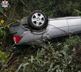 36-latek kierujący pojazdem marki Ford Mondeo stracił panowanie nad autem, zjechał do przydrożnego rowu, uderzył w drzewo i dachował. Kierujący był trzeźwy i nie doznał poważniejszych obrażeń.