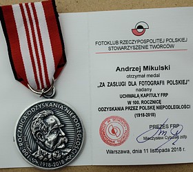 15 grudnia w Częstochowie w Miejskiej Galerii Sztuki, Mieczysław Cybulski prezes Fotoklubu Rzeczypospolitej Polskiej odznaczył artystów fotografów medalem „Za zasługi dla fotografii polskiej” w 100. rocznicę odzyskania przez Polskę niepodległości (1918-2018). Wśród odznaczonych znalazł się Andrzej Mikulski z Łęcznej, współpracownik Gazety Regionalnej Pojezierze.