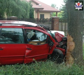 Łęczyńscy policjanci wyjaśniają okoliczności wypadku w miejscowości Zezulin Niższy. Kierujący skodą wjechał w drzewo. Do szpitala trafiło dwóch mężczyzn podróżujących pojazdem.