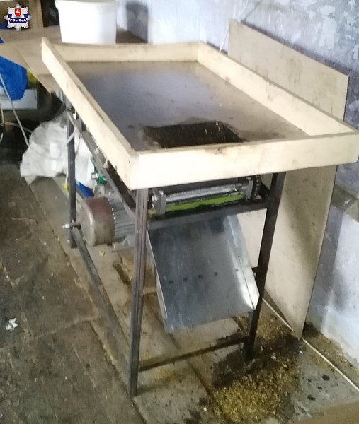 W mieszkaniu znaleziono również kilka maszynek do ręcznej produkcji papierosów w domowych warunkach oraz maszynę z silnikiem elektrycznym służącą do rozdrabniania tytoniu. Ponadto na terenie posesji odkryto 8 litrów alkoholu bez polskich znaków skarbowych akcyzy.