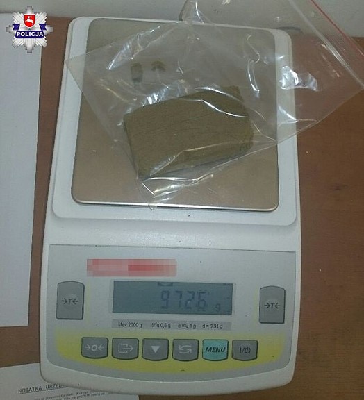 Wczoraj, 26 lutego po godzinie 20 policyjni wywiadowcy z KMP w Lublinie podczas pełnienia służby na skrzyżowaniu ul. Walecznych z Al. Andersa w Lublinie zauważyli pojazd marki Seat Leon, którego kierujący zignorował czerwone światło. W związku z popełnionym wykroczeniem funkcjonariusze zatrzymali pojazd do kontroli drogowej na ul. Koryznowej. Podczas czynności kierujący zachowywał się nerwowo, wzbudziło to u policjantów podejrzenia, że może posiadać zabronione substancje. Ich przypuszczenia okazały się słuszne, bo znaleźli i zabezpieczyli u niego blisko 100 gramów środków odurzających. Po sprawdzeniu narkotesterem okazało się, że jest to haszysz.