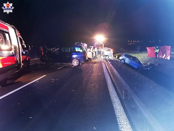 W nocy z soboty na niedzielę doszło do śmiertelnego wypadku drogowego. Ze wstępnych ustaleń wynika, że kierujący samochodem marki Volkswagen podczas manewru wyprzedzania kolumny pojazdów zderzył się czołowo z pojazdem marki Audi. Trzy osoby poniosły śmierć na miejscu.