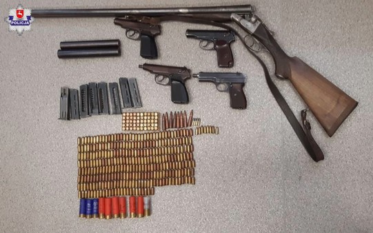 Policjanci z trzeciego komisariatu wspólnie z kryminalnymi z komendy miejskiej pojechali na teren jednej z posesji w gminie Głusk. Z operacyjnych ustaleń wynikało, że mieszkający tam 44-letni mężczyzna może być w posiadaniu nielegalnej broni i amunicji. Mundurowi przeszukując pomieszczenia gospodarcze i mieszkalne natrafili na około 350 sztuk amunicji, broń długą, 4 sztuki broni krótkiej, 2 tłumiki oraz magazynki do broni krótkiej.