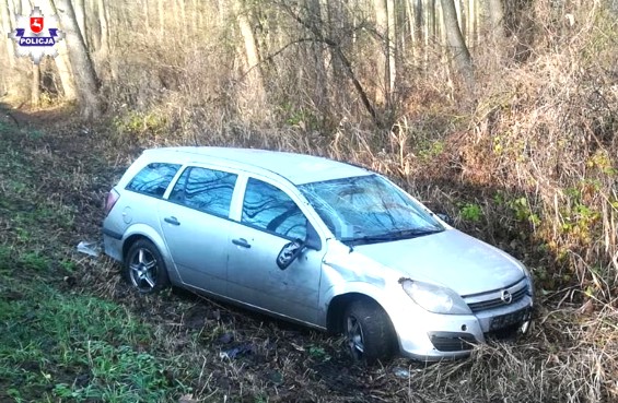 17 grudnia dyżurny włodawskiej komendy został poinformowany o pojeździe, którego kierujący wjechał do przydrożnego rowu. Policjanci z drogówki w Lubieniu zastali przy aucie 30-latka. Na miejscu ustalili, że na łuku drogi mieszkaniec Włodawy kierując oplem nie dostosował prędkości do panujących warunków, wpadł w poślizg, uszkodził słupek drogowy, dachował a na koniec uderzył w drzewo.