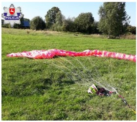 Obrażeniami ciała zakończyła się próba nauki sterowania paralotnią dla 46-latka. Policjanci ustalili, że mężczyzna paralotnię kupił kilka tygodni wcześniej na jednym z portali ogłoszeniowych. Nie mając doświadczenia sam postanowił poćwiczyć stawianie paralotni i sterowanie.