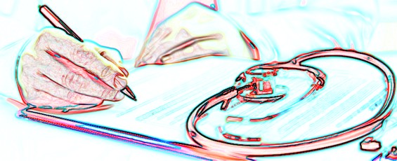 Za doktorem murem stoją pacjenci.