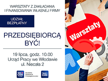 Fundacja Tax Care, Inicjatywa Wspierania Przedsiębiorczości oraz Urząd Pracy we Włodawie zapraszają do udziału w warsztatach na temat przedsiębiorczości.