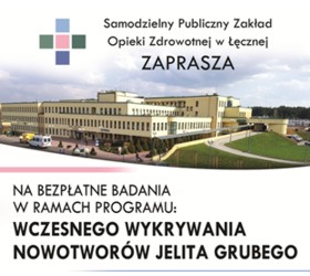 Szpital z Łęcznej rozpoczął realizację Programu wczesnego wykrywania nowotworówjelita grubego. Z bezpłatnych badań skorzystać mogą mieszkańcy powiatu łęczyńskiego, lubelskiego, lubartowskiego, świdnickiego. Program skierowany jest do osób aktywnych zawodowo, pracujących, bezrobotnych i poszukujących pracy w wieku od 50 do 65 lat. Osoby młodsze mogą się zbadać, jeśli w rodzinie ktoś chorował na raka jelita grubego.