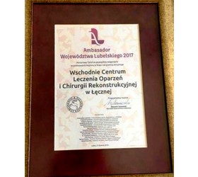 Wschodnie Centrum Leczenia Oparzeń i Chirurgii Rekonstrukcyjnej zostało Ambasadorem Województwa Lubelskiego. W tegorocznej - XIX edycji konkursu tytuł ten przyznano także Grażynie Torbickiej i Spółdzielni Mleczarskiej „Spomlek”.