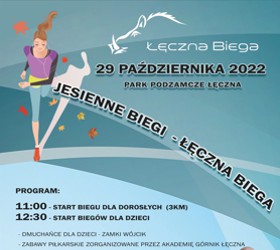 Kolejna biegowa impreza w Łęcznej przed nami. Tym razem pod nazwą „Jesienne biegi – Łęczna Biega”. Wydarzenie odbędzie się 29 października 2022 r. W cudnych okolicznościach Parku Podzamcze biegać będą dzieci i dorośli. Dla najmłodszych przygotowano dystanse na: 50, 100, 200 i 300 m. Natomiast dla dorosłych będzie to dystans 3 kilometrów.