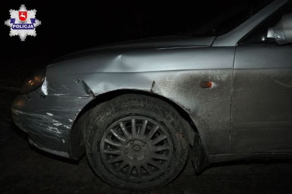 Wczoraj wieczorem w miejscowości Łysołaje, gm. Milejów doszło do kolizji. Jadący samochodem m-ki Audi 21-latek zauważył, że poruszający się z naprzeciwka samochód niebezpiecznie zmierza w jego kierunku. Mimo, że zjechał maksymalnie na prawo nie udało się uniknąć kolizji. Pojazdy otarły się bokami. Kierujący daewoo przejechał jeszcze kilkaset metrów, zatrzymał samochód i uciekł.