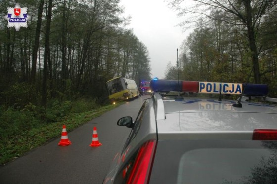 Zgłoszenie otrzymali lubartowscy policjanci przed godz. 8.00 rano. Z informacji wynikało, że autobus wiozący dzieci do jednej ze szkół podstawowych w powiecie zjechał na pobocze pomiędzy miejscowościami Wandzin a Majdan Kozłowiecki. Istniało zagrożenie, że pojazd z uczniami przechyli się bardziej i przewróci do rowu.