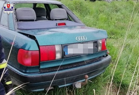 Wczoraj po godz. 15 policjanci otrzymali zgłoszenie o zdarzeniu drogowym, do którego doszło na ul. Poniatowskiego w Ostrowie Lubelskim. Na miejscu funkcjonariusze ustalili, że kierujący pojazdem marki Audi na skutek samoistnego wystrzału opony stracił panowanie nad pojazdem i dachował. Na szczęście 54–latek jechał sam. Mężczyzna nie odniósł żadnych obrażeń, był trzeźwy.