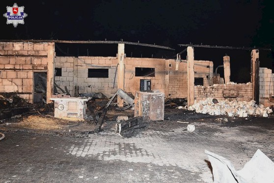 Wczoraj wieczorem dyżurny lubartowskiej komendy dostał informację, że w Rozkopaczewie pali się zakład stolarski. Na miejsce od razu skierowani zostali policjanci z Ostrowa Lubelskiego a także funkcjonariusze z komendy w Lubartowie. Pożar gasiło 7 zastępów straży pożarnej. Spaleniu uległ budynek zakładu stolarskiego oraz część zakładu, gdzie składowane było drewno przeznaczone do dalszej obórki a także elementy gotowe. Spaleniu uległy również maszyny i narzędzia specjalistyczne. Wstępna wartość oszacowanych strat ok. 0,5 miliona zł. Akcja gaśnicza zakończyła się ok. godziny 22.00.