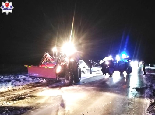 Na drogach panują ciężkie warunki do jazdy. Na jezdniach pomimo pracy służb drogowych robi się tak zwana ,,szklanka”, a miejscami leży dużo błota pośniegowego. W godzinach popołudniowych w Klementynowie doszło do dachowania samochodu osobowego. 21-latek kierując nissanem nie dostosował prędkości do warunków panujących na drodze, zjechał na pobocze i dachował. Jechał sam.