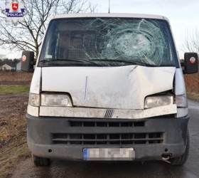 Dzisiaj rano doszło do potrącenia pieszego. Najprawdopodobniej młody mężczyzna szedł nieprawidłową stroną drogi i wtargnął nagle wprost pod jadący za nim pojazd marki Fiat Ducato.