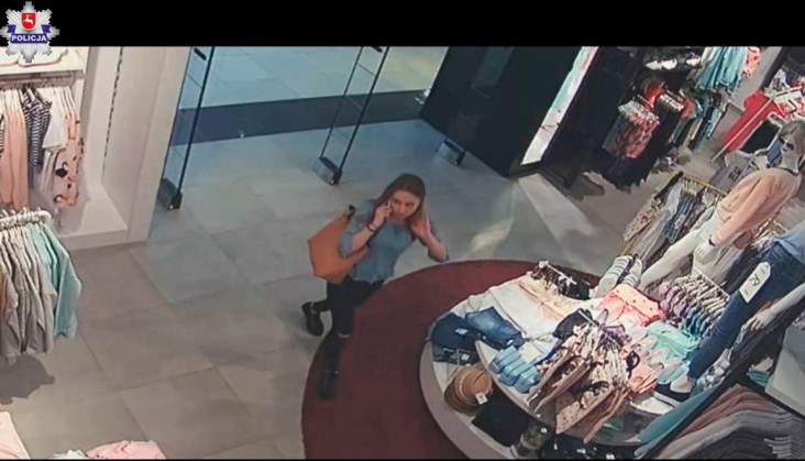 Do kradzieży doszło pod koniec maja w jednym ze sklepów odzieżowych w galerii handlowej przy al. Witosa w Lublinie. Z zawiadomienia złożonego przez kierownika sklepu, wynika że na jego teren weszła młoda kobieta, ubrana w niebieską bluzkę i spodnie czarne z przecięciami na kolanach a na ramieniu posiadała brązową torbę. Wykorzystała chwilę nieuwagi pracowników i skradła kilka sztuk odzieży o wartości blisko 300 zł. Jej zachowanie zarejestrowała kamera sklepowego monitoringu, na której widać jak wchodzi do przymierzalni z kilkoma sztukami odzieży. Po pewnym czasie wychodzi tylko z jedną bluzką i odwiesza ją na wieszak po czym wychodzi ze sklepu. Pracownicy znaleźli w przymierzalni metki od ubrań, które nieuczciwa klientka wyniosła w swojej torbie.