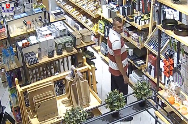Z zawiadomienia złożonego przez właściciela sklepów w galerii przy al. Unii Lubelskiej w Lublinie, wynika że na ich teren wszedł mężczyzna, ubrany w koszulkę z krótkim rękawem w poziome biało – czerwone paski i ciemne spodnie, a w ręku trzymał reklamówkę. W pierwszym sklepie wykorzystał chwilę nieuwagi jego pracowników i schował do przyniesionej ze sobą torebki komplet noży, a następnie opuścił sklep nie płacąc za towar. Chwilę później w drugim sklepie to samo zrobił z kompletem pościeli. Właścicielka sklepu oszacowała straty na kwotę ponad 500 zł. Policjanci zabezpieczyli sklepowy monitoring, który zarejestrował całe zdarzenie oraz wizerunek sprawcy.