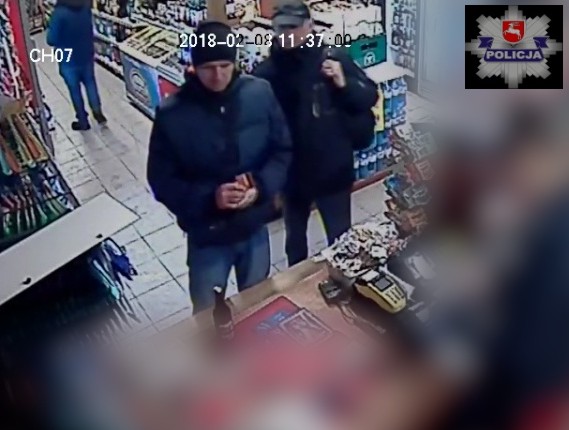 Policjanci poszukują mężczyzn, którzy posługiwali się skradzionymi wcześniej kartami bankowymi. Zostali zarejestrowani przez monitoring sklepu gdy robili zakupy. Karty razem z portfelem zostały skradzione dzień wcześniej 39-letniemu mężczyźnie.