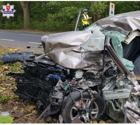 Do wypadku drogowego z udziałem pojazdu marki Kia i ciężarówki marki Daf doszło 28 września. Ze wstępnych ustaleń wynika, że kierujący samochodem osobowym 58-latek z nieustalonych przyczyn zjechał na przeciwległy pas ruchu i zderzył się czołowo z tirem.