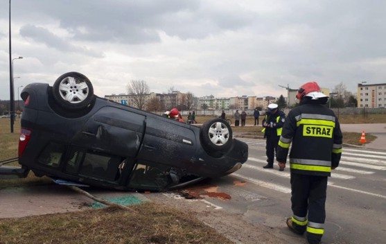 Dzisiaj, 1 marca po godz. 13 doszło do zdarzenia drogowego, w wyniku którego jeden z pojazdów dachował. Jedna osoba została przewieziona do szpitala na badania.