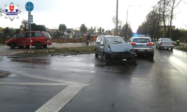 Przed godz. 10 dyżurny otrzymał zgłoszenie o zdarzeniu drogowym na DK-82. Na skrzyżowaniu al. Piłsudskiego i Lubelskiej we Włodawie, kierujący pojazdem marki Volkswagen Sharan nie udzielił pierwszeństwa przejazdu jadącemu samochodem marki Ford Galaxy mieszkańcowi gm. Wyryki. Oba pojazdy uległy rozległym uszkodzeniom. Kierowca i pasażer forda z niegroźnymi obrażeniami ciała trafili do szpitala. 59-latkowi z Krynicy zatrzymano prawo jazdy. Sprawę kolizji rozpozna Sąd Rejonowy we Włodawie.