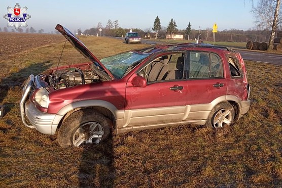 Dzisiaj około godziny 7.20 oficer dyżurny włodawskiej komendy otrzymał zgłoszenie, że na drodze wojewódzkiej 812 w pobliżu miejscowości Korolówka - Osada dachowało auto osobowe. Policjanci na miejscu zdarzenia ustalili, że 37–letni mieszkaniec gminy Wyryki, kierujący toyotą na prostym odcinku jezdni stracił panowanie nad pojazdem. Auto wypadło z drogi i dachowało w przydrożnym rowie.