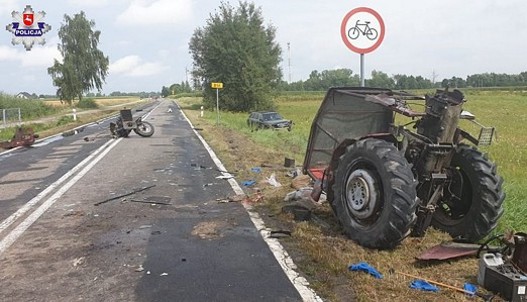 Do zdarzenia doszło we wtorek około godziny 9.35 na drodze wojewódzkiej W816. - Jak wstępnie ustalili funkcjonariusze ruchu drogowego, 77 – latek kierujący ciągnikiem rolniczym marki Ursus wyjeżdżając z drogi podporządkowanej nie ustąpił pierwszeństwa przejazdu pojazdowi marki Audi, kierowanego przez 32-latka – informuje starszy aspirant Kinga Zamojska-Prystupa. Obaj to mieszkańcy gminy Hanna. Kierowca audi nie odniósł obrażeń, zaś 77 - latek z urazem został zabrany do szpitala. Od kierującego ciągnikiem rolniczym pobrano krew do badań, natomiast kierowca audi w chwili zdarzenia był trzeźwy. Z uwagi na uszkodzenia zatrzymano dowody rejestracyjne obu pojazdów.
