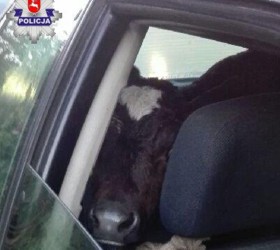 Nietypową kontrolę drogową przeprowadzili policjanci z Urszulina, którzy na tylnym siedzeniu audi zobaczyli... cielaka. Kierowca, 50-latek z gm. Urszulin, tłumaczył że nie miał jak go przewieźć.
